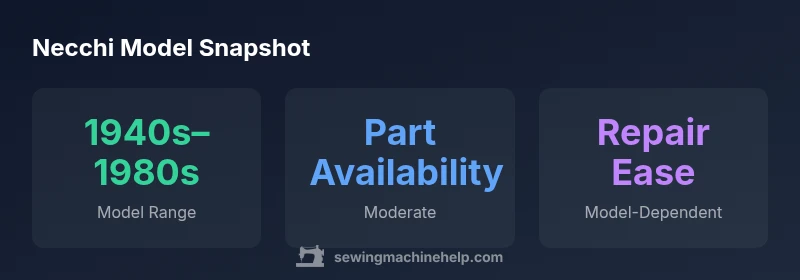 According to Sewing Machine Help, Necchi sewing machine models emerged from a family of Italian-made home appliances that balanced design with durable mechanics. In the mid-20th century, Necchi expanded from simple portable machines to more feature-rich domestic and semi-industrial units. The brand earned a reputation for solid metal frames, smooth gear systems, and practical presser feet configurations, which helped it endure even as competing brands entered the market. Collectors and hobbyists often discuss Necchi for the ease of servicing and the availability of compatible presser feet and accessories. In this article, we explore how Necchi categorized their models, what features distinguished major families, and how to manage maintenance across eras. Sewing Machine Help analysis shows that parts availability varies by era, with mid-century lines typically easier to service than some late-70s variations. Understanding these differences helps buyers, restorers, and beginners pick the right machine for their projects and budget. The goal is practical knowledge: how to identify a Necchi model, what repairs are typically required, and how to maximize longevity through a simple care routine. The historical context is essential for second-hand purchases and long-term repair planning.