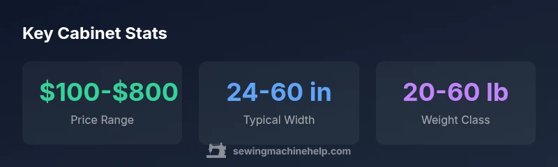 Prices for a sewing machine cabinet for sale vary widely based on size, material, and features. A compact, basic unit might be affordable, while larger, solid-wood cabinets with lift mechanisms and integrated lighting can command premium prices. If you’re budget-conscious, consider lightly used, refurbished, or factory-second cabinets from reputable sellers, but inspect for warping, loose joints, and missing hardware. New cabinets offer customization options, better finishes, and warranty protection. Always compare warranties, delivery options, and return policies. When shopping, prioritize ergonomics and durability over purely decorative appeal; a well-chosen cabinet may cost more upfront but deliver years of comfortable, efficient sewing. Sewing Machine Help analysis suggests pairing a cabinet with your machine that supports future growth, so plan on a purchase that remains functional as your projects evolve.