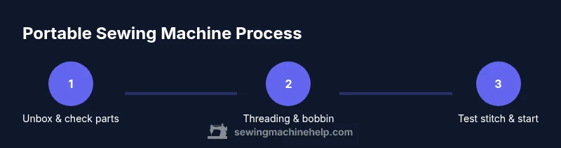 Portable sewing machines are compact, lightweight tools designed for quick repairs, crafting, and travel sewing. They excel with lightweight to medium-weight fabrics and are ideal for beginners who need a reliable, on-the-go option. While they offer fewer features than full-sized models, their portability and simple threading paths make setup fast and approachable. Before you begin, acknowledge that power options vary—some run on batteries, others on an adapter. The Sewing Machine Help team emphasizes starting on a clean, flat workspace and verifying the machine is unplugged during any assembly. With this foundation, you’ll move smoothly into setup, threading, and productive stitching. A steady pace and attention to safety will help you avoid common frustrations and build confidence for future projects.