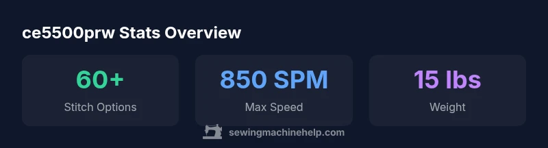 According to Sewing Machine Help, the ce5500prw brother sewing machine sits at a practical midpoint in Brother's lineup, balancing versatility with user-friendliness. For home sewists, hobbyists, and beginners, this model promises a broad stitch palette, stable feeding, and reliable motor response. The ce5500prw is designed to handle a range of fabrics—from light chiffons to medium-weight cottons and even denim samples—with appropriate presser-foot choices. In this section, we place the machine in context and outline who it's best suited for, what it costs in typical markets, and how its feature set aligns with common sewing projects. The keyword appears naturally as we discuss the model's purpose and position among peers. The Sewing Machine Help team notes that while it isn't the most premium machine, it offers meaningful value when you need flexibility without overbuying.