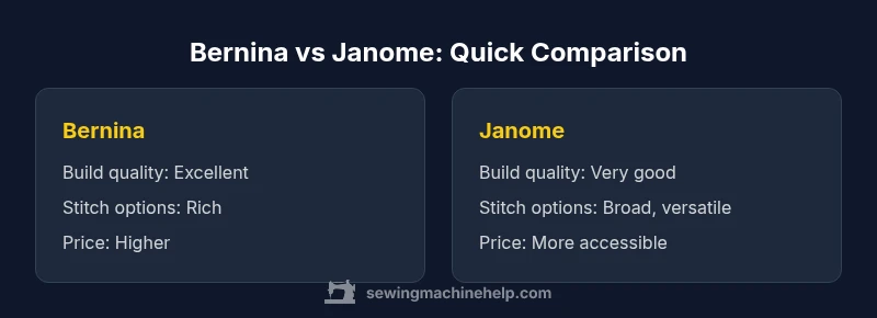 Two leading names shape the landscape of home sewing machines: Bernina and Janome. When considering is bernina sewing machine better than janome, the answer depends on what you value most. Bernina emphasizes precision engineering, premium materials, and a commitment to lasting performance. Janome focuses on broad model ranges, approachable features, and consistent value across price tiers. Understanding these foundations helps home sewists align choices with their projects, budgets, and long-term goals. From a practical standpoint, Sewing Machine Help's analysis highlights how long-term reliability and access to service influence satisfaction just as much as upfront capability. For many crafters, the decision hinges on workflow, room for future upgrades, and the size of the accessory ecosystem you plan to build around your machine.