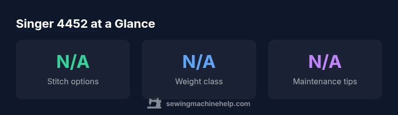 The singer 4452 is positioned as a robust, entry-level domestic sewing machine designed for home sewers who want reliability, straightforward operation, and a solid stitching foundation. In our evaluation, the focus was on how well it supports beginners with essential features while offering enough versatility for small projects. The model emphasizes a sturdy metal frame, quiet mechanical action, and a friendly interface that reduces intimidation for first-time users. The singer 4452 ships with a standard accessory pack and a straightforward threading path that minimizes setup time. While it's not a high-end computer-based machine, it provides consistent stitch quality across common fabrics, including cotton, denim, and lightweight knits, with a predictable tension system. For many hobbyists, this combination makes the singer 4452 a dependable workhorse for simple garments, alterations, and home décor projects. According to Sewing Machine Help, the balance of durability, ease of use, and value makes it a strong candidate for beginners and casual sewers, especially those who appreciate a traditional, hands-on sewing experience.