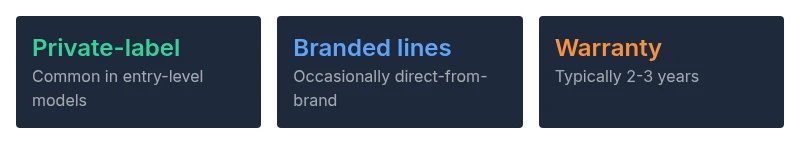 | Branding | Manufacturer Type | Warranty & Service | Notes |