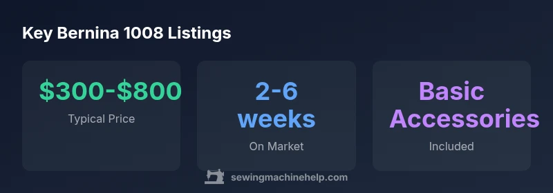 When searching for a Bernina 1008 for sale, consider multiple buying channels: local classifieds, sewing-machine specialty shops, and reputable online marketplaces with seller feedback. Local pickup reduces shipping risk and gives you a hands-on opportunity to inspect the machine in person. In negotiations, begin with a clear assessment of condition, service history, and included accessories, then anchor your offer below the top asking price to leave room for repairs or tuning. If the listing lacks essential documentation, request it and factor potential costs into your final bid. For dealers, you might encounter refurbished or serviced units with limited warranties; balance that against the risks of used units lacking any coverage. Finally, avoid listings that lack photos of the bobbin area, feed dogs, or underside panels, since those views often reveal hidden wear. Sewing Machine Help’s buying guide suggests prioritizing listings with verifiable maintenance and a track record of seller transparency to minimize post-purchase surprises.