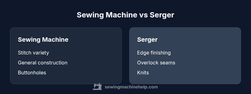 According to Sewing Machine Help, choosing between a sewing machine or serger hinges on your projects, finishes, and budget. For most home sewists, starting with a versatile sewing machine is the smart first step, then adding a serger later for knit fabrics and clean edges. This comparison highlights the strengths and tradeoffs to help you decide quickly.