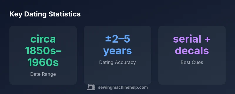 Dating a Singer sewing machine hinges on assembling multiple lines of evidence rather than relying on a single clue. When people ask about singer sewing machine dates, the first instinct is often to scan the serial number. In practice, serial data is most informative when cross-referenced with model identifiers, decals, and cabinet style. The historical arc of Singer spans hand-cranked devices, early electric machines, and streamlined mid-century silhouettes, each leaving traces in hardware, logos, and internal mechanisms. For home sewists and collectors, recognizing the era helps with maintenance plans, parts compatibility, and value assessments. As noted by the Sewing Machine Help team, a careful dating process begins with documenting the serial number and observing the visible cues on the machine’s exterior.