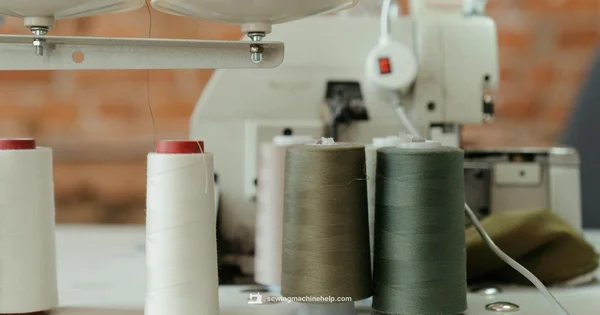 | Accessories nearby | Thread, bobbins, etc. | Nearby sewing notions |