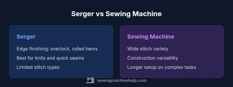The question of why use a serger instead of a sewing machine often boils down to two pillars: edge finishing and production speed. A serger performs trimming, overcasting, and seam finishing in one pass, dramatically reducing handling time on many woven and knit fabrics. By contrast, a traditional sewing machine specializes in a wider range of stitch types and construction tasks, from topstitching to buttonholes and zippers. For hobbyists and beginners, this distinction is essential because it shapes which tools belong in a starter kit. In the Sewing Machine Help analysis, most home sewers benefit from understanding both capabilities and how they complement each other over the lifetime of projects. The core message, especially for those asking why use a serger instead of a sewing machine, is that you don’t have to choose one tool for every task—your best results often come from using both in concert.