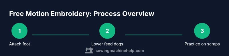Free motion embroidery on a sewing machine is a technique that lets you move the fabric rather than the machine's feed dogs to create stitches. The result is a hand-drawn look, with lines that vary in density and direction. According to Sewing Machine Help, this method expands your creative toolkit beyond standard stitches and decorative patterns. You can use it for quilts, personalizing garments, embellishing home decor, or simply practicing control and coordination. Unlike traditional machine embroidery, you guide the needle with your movements rather than the fabric feeding automatically. This requires a different setup, including a compatible free-motion foot and proper stabilization of both fabric and stabilizer. The payoff is expressive texture, free-form motifs, and a sense of hands-on control that is both therapeutic and satisfying for hobbyists and beginners.