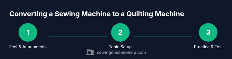 Many home sewists reach a point where they want to tackle quilting without investing in a separate quilting machine. A standard domestic machine can perform many quilting tasks with the right attachments, settings, and practice. According to Sewing Machine Help, turning a regular sewing machine into a quilting setup is accessible for many hobbyists, provided you understand the core limitations and choose the right attachments. The first step is to set expectations: you won't get the same speed on a long-arm frame, but you can achieve smooth stitches, better fabric feeding, and the freedom to quilt small to mid-size projects at home. The goal is to improve fabric control, reduce puckering, and enjoy a comfortable stance as you guide the quilt sandwich. The right approach uses a combination of a walking foot, a compatible free-motion foot, and a stable work surface, along with careful tension and needle choices. Also keep in mind that not every machine will drop its feed dogs or accept every attachment, so verify compatibility in your manual or with the manufacturer. This section will guide you through essential decisions and lay a solid foundation for your quilting journey.