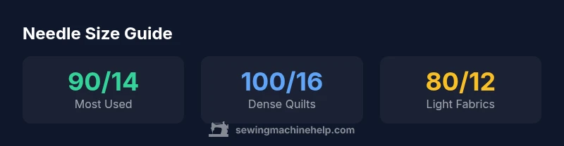 When you ask what size sewing machine needle for quilting, you are really asking about how to match a slender steel tip to your fabric and stitches. Needle size is a gauge that helps the machine pierce multiple layers without skipping stitches or breaking thread. For most home quilters working with standard quilting cottons, a size 90/14 is the common starting point. The 90/14 designation indicates a mid-range needle with a medium diameter and a sharp tip, suitable for mid-weight fabrics and a range of thread types. According to Sewing Machine Help, the selection process becomes easier when you view needle size as a tool for managing fabric layering and stitch density rather than a rigid rule. If your quilt uses several fabric layers or dense batting, stepping up to a 100/16 can improve penetration and reduce fabric fraying. For lighter fabrics or very delicate prints, an 80/12 can help prevent fabric puckering. Throughout any quilting project, also consider the thread type and stitch length, since those factors interact with needle size in real-world sewing.