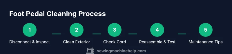 Unplug the foot pedal, inspect the cord and switch, then clean exterior surfaces to remove dust and lint. Gather a small brush, microfiber cloth, isopropyl alcohol, and a light lubricant if recommended by your model's manual. Follow the steps below for safe, effective cleaning and longer pedal life. This quick answer highlights essential safety checks and the right sequence to avoid electrical hazards.