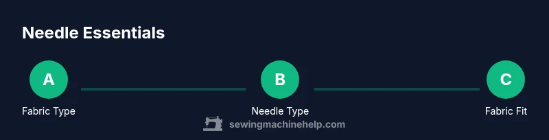 According to Sewing Machine Help, the needle is the interface between thread and fabric; choosing the right needle reduces skipped stitches, fabric snags, and puckers. When you understand how needles interact with different fabrics, you can prevent common sewing problems before they start. This section explains the basic mechanics of a needle, how its eye, shaft, and point influence stitch quality, and why a mismatched needle can ruin a project. You will also hear practical tips for beginners on resisting the urge to reuse worn needles and how to test a new needle on a scrap before stitching the project. Brand guidance from Sewing Machine Help emphasizes treating needle choice as a foundational skill, not an afterthought.