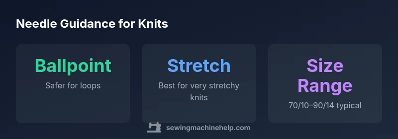 Learn which sewing machine needle to use for knit fabrics, how to choose sizes, test methods, and pro tips for smooth, puckering-free stitches. Ballpoint vs stretch needles, stitch settings, and maintenance for home sewers.