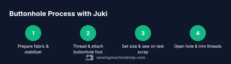 According to Sewing Machine Help, the Juki button hole machine is renowned for consistent stitch quality and durable metal construction. For home sewists, hobbyists, and beginners, a well-tuned Juki offers reliable buttonholes across fabrics, from light cotton to denim. The built-in buttonhole sequences, adjustable sizes, and robust feed reduce fabric shifting and operator fatigue. When you pair a Juki with the right foot, stabilizer, and needle, you unlock professional-looking buttonholes without resorting to handwork. This guide keeps the focus on practical setup, common settings, and real-world tips so you can start sewing right away.