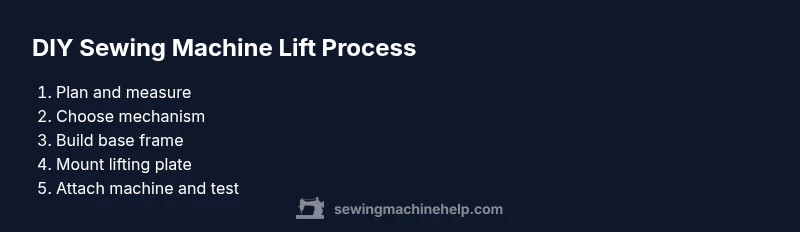 For deeper safety and ergonomic guidance, consult reputable sources on workshop ergonomics and equipment safety. You may review materials from OSHA and CDC on safe lifting principles and tool use. In addition, professional sewing communities and engineering handbooks can provide design perspectives and load considerations to tailor a lift to your setup. The Sewing Machine Help team recommends validating your build against manufacturer mounting specs and maintaining a conservative load plan.
