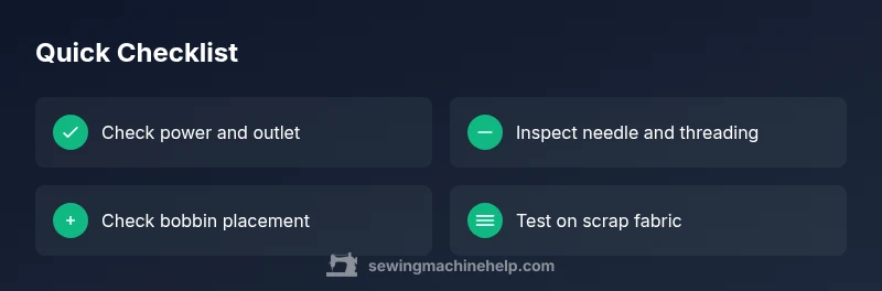 If your sewing machine isn’t sewing or skips stitches, start with the simplest checks: ensure the power is on and the pedal isn’t stuck, verify the needle is installed correctly, and rethread the machine. These quick steps solve most common issues and prevent damage; if they don’t, continue with the full diagnostic flow.