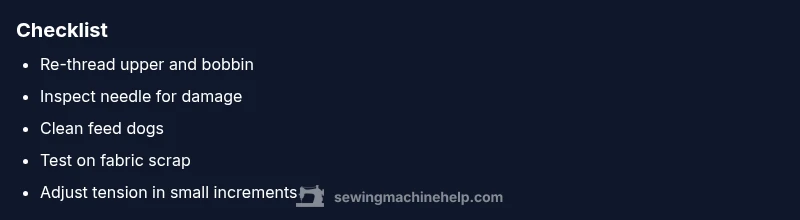 Before diving into disassembly, perform these safe, non-destructive checks. First, power off the machine, remove the presser foot, and manually jog the needle to ensure smooth movement. Re-thread the machine from start to finish, paying close attention to the thread path, tension discs, and the take-up lever. Use new or known-good thread and a fresh needle appropriate for your fabric. Test on a scrap swatch to see if the problem persists. If the fabric still gathers, proceed to more targeted checks rather than forcing a repair.