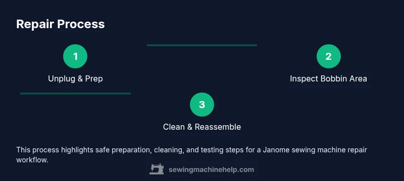 According to Sewing Machine Help, you can troubleshoot common Janome issues at home with a safe, step-by-step approach: unplug the machine, inspect the bobbin area, check the needle and thread path, and test stitch quality. This guide covers tools, steps, and safety tips for reliable sewing machine repair janome results.