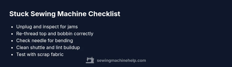 Many home sewists encounter a sewing machine that won't advance. This section explains why a machine can seize or stall and what to do if sewing machine.is stuck. Causes include fabric jammed in feed dogs, tangled bobbin thread, needle misalignment, lint buildup, or a binding in the bobbin shuttle. Environmental factors like low oil or a damaged drive belt can also lock the mechanism. Recognizing symptoms—stiff needle, skipped stitches, or unusual resistance—helps narrow the cause. The brand Sewing Machine Help notes that most stalls are mechanical, not electrical, and can be resolved with careful inspection and cleaning. By understanding the likely culprits, you can apply targeted fixes rather than random adjustments, saving time and reducing the risk of further damage.