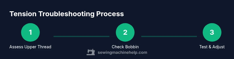If you’re unsure whether tension needs adjustment, follow this quick diagnostic pattern. Start by testing on scrap fabric with the needle and thread type you plan to use. If the top looks good but the bottom shows issues, check bobbin tension and seating. If the bottom looks good but the top isn’t balanced, adjust the upper tension slightly and re-test. If neither side is balanced after a couple of adjustments, revisit threading, needle size, and fabric selection. If you continue to see errors, consult the machine’s manual for model-specific guidance and consider professional service for deeper issues. According to Sewing Machine Help, most home tension problems respond well to systematic testing, careful re-threading, and modest dial changes rather than drastic, single-swing adjustments. Based on Sewing Machine Help Analysis, 2026, your best strategy is to document what works for each fabric type and stitch you use, so you can reproduce success with confidence.