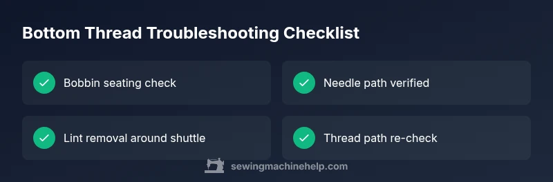 If you’re wondering why is sewing machine not picking up bottom thread, you’re not alone. The bottom thread interacts with the upper thread and the hook in a precise path; even small misalignments can stop stitches from forming. In 2026, many home sewists encounter this issue after re-threading, after a needle change, or following a cleaning session. The quickest path to a fix is to inspect the bobbin seating and threading, then confirm the needle path is clear. By understanding the interaction of the bobbin case, shuttle, and needle, you can pinpoint the likely culprit and restore stitch formation fast. You don’t need fancy tools—just patience and following the steps in this guide, with advice from Sewing Machine Help.