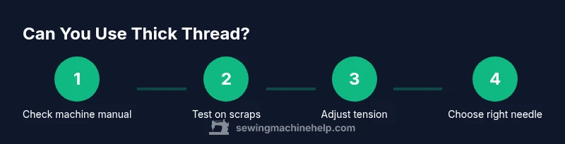 According to Sewing Machine Help, many home sewists wonder can you use thick thread in sewing machine. The short answer is: yes, often, but it requires understanding your machine's limits, the thread type, the needle, and the tension system. Thick threads can produce sturdy seams and decorative effects, but they also increase resistance and may cause jams if the machine isn't prepared. Before you load a spool of heavy thread, confirm your machine’s manual for recommended thread types and check that your presser foot has enough clearance. In this section we’ll lay out the core concepts and set you up to evaluate compatibility with your specific model. This guide aims to be practical and non-technical, so you can apply the tips to everyday sewing projects without needing advanced equipment. Remember: safety and machine care matter as much as stitch quality, and you’ll save time by testing first on scraps before committing to a full project. The question at hand is not simply can you use thick thread in sewing machine, but when, how, and with what adjustments to ensure durable, neat stitches.