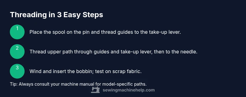 Learn to thread a sewing machine correctly, including upper thread routing, bobbin winding, and tension checks. This practical, beginner-friendly guide from Sewing Machine Help walks you through safe setup, common variations, and hands-on practice to achieve consistent stitches.